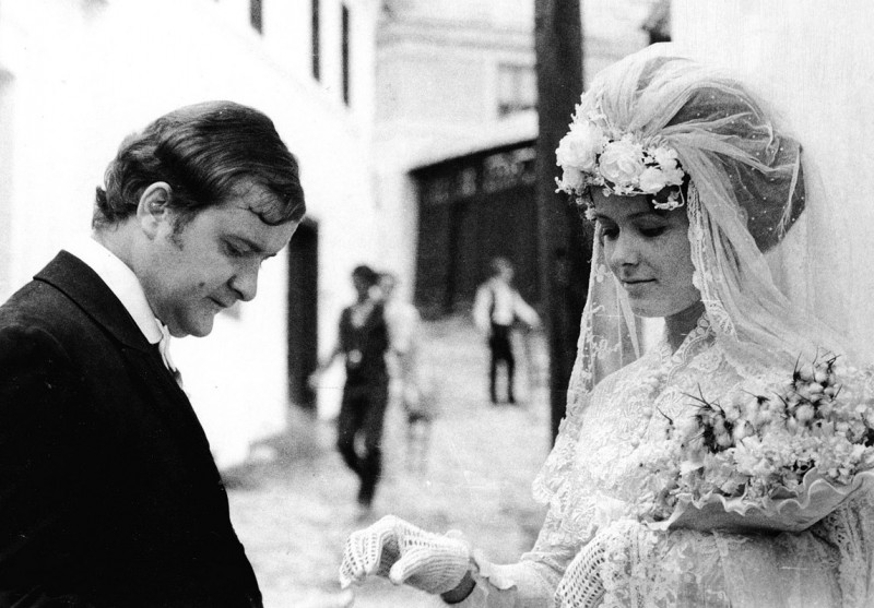 Nunta de piatră (ianuarie 1973) a însemnat, în accepția criticii de film, un eveniment artistic de proporții. Cei doi cineaști – colegi de promoție și reprezentanți de frunte ai „generației ‘70” – au ecranizat, pentru început, două povestiri ale scriitorului ardelean Ion Agârbiceanu: Mircea Veroiu a prelucrat povestea tristă a personajului numit Fefeleaga (din schița cu același nume), iar Dan Pița a pornit de la povestirea „La o nuntă”, cei doi cineaști realizând un film în două părți, cu insemne stilistice și narative distincte, dar unitar prin sensurile tragice, prin tonul baladesc și prin modernismul expresiei plastice (care poartă pecetea operatorului de imagine Iosif Demian). Identificată cu Leopoldina Bălănuță, Fefeleaga din episodul regizat de Mircea Veroiu este, prin semnificații, un personaj de tragedie antică, fiind, totodată, foarte „de-acolo”, din spațiul de sărăcie și iluzii al aurului din munții de piatră ai Apusenilor. Foarte „de-acolo”, din balada „Mioriței”. Totul participă la ritualul nunților tragice: nu în ultimul rând, natura. Aproape fără cuvinte, destinele pietrificate își poartă crucea, pe fondul unui cântec spus ca o rugăciune (Dorin Liviu Zaharia), dintr-o poveste tristă, cu o „nuntă” din care n-a mai rămas decât un voal alb de mireasă care drapează fecioara de pe catafalc. Fefeleaga, statuară, încremenită, ca un monument al durerii, este însoțită de personaje-presimțiri, de personaje-semn (și ele), întrupate de Eliza Petrăchescu, Nina Doniga, Adrian Georgescu. Nici episodul lui Dan Pița nu are multe personaje de prim-plan, deși nuvela „La o nuntă” are predominanțe epice: sunt angrenați în tramă și în dramă Toboșarul, Ceterașul, Socrul, Mireasa, Mirele (identificați, iată, prin funcția din ceremonialul nunții, și nu prin nume și prenume), interpretași de Mircea Diaconu (care interpretează cu multă sobrietate un personaj amuzant, cu destin tragic, Toboșarul ), Radu Boruzescu (Ceterașul), Petre Gheorghiu (Socrul), Ursula Nussbacher (Mireasa), George Calboreanu jr. (Mirele). Mireasa – căsătorită împotriva voinței ei – se îndrăgostește, la nuntă, de Ceteraș (un fugar, urmărit de jandarmi), cu care fuge peste deal, dispariția lor având consecințe tragice. -Călin Căliman